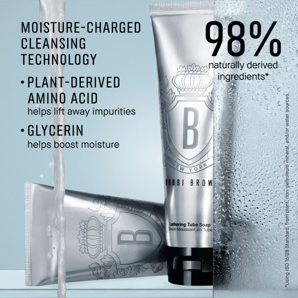 Lathering Tube Soap Ingredients: Water\Aqua\Eau, Potassium Myristate, Glycerin, Potassium Behenate, Sodium Methyl Cocoyl Taurate, Potassium Palmitate, Potassium Laurate, Potassium Stearate, Persea Gratissima (Avocado) Oil, Triticum Vulgare (Wheat) Germ Oil, Simmondsia Chinensis (Jojoba) Seed Oil, Vitis Vinifera (Grape) Seed Oil, Sesamum Indicum (Sesame) Seed Oil, Rosa Canina (Rose) Fruit Oil, Limnanthes Alba (Meadowfoam) Seed Oil, Olea Europaea (Olive) Fruit Oil, Prunus Amygdalus Dulcis (Sweet Almond) Oil, Oenothera Biennis (Evening Primrose) Oil, Prunus Armeniaca (Apricot) Kernel Oil, Brassica Campestris (Rapeseed) Seed Oil, Citrus Grandis (Grapefruit California), Lavandula Angustifolia (Lavender), Rosmarinus Officinalis (Rosemary), Squalane, Cetearyl Alcohol, Petrolatum, Butyrospermum Parkii (Shea Butter), Methyldihydrojasmonate, Polyquaternium-7, Peg-3 Distearate, Disodium Edta, Limonene, Linalool, Methylchloroisothiazolinone, Methylisothiazolinone