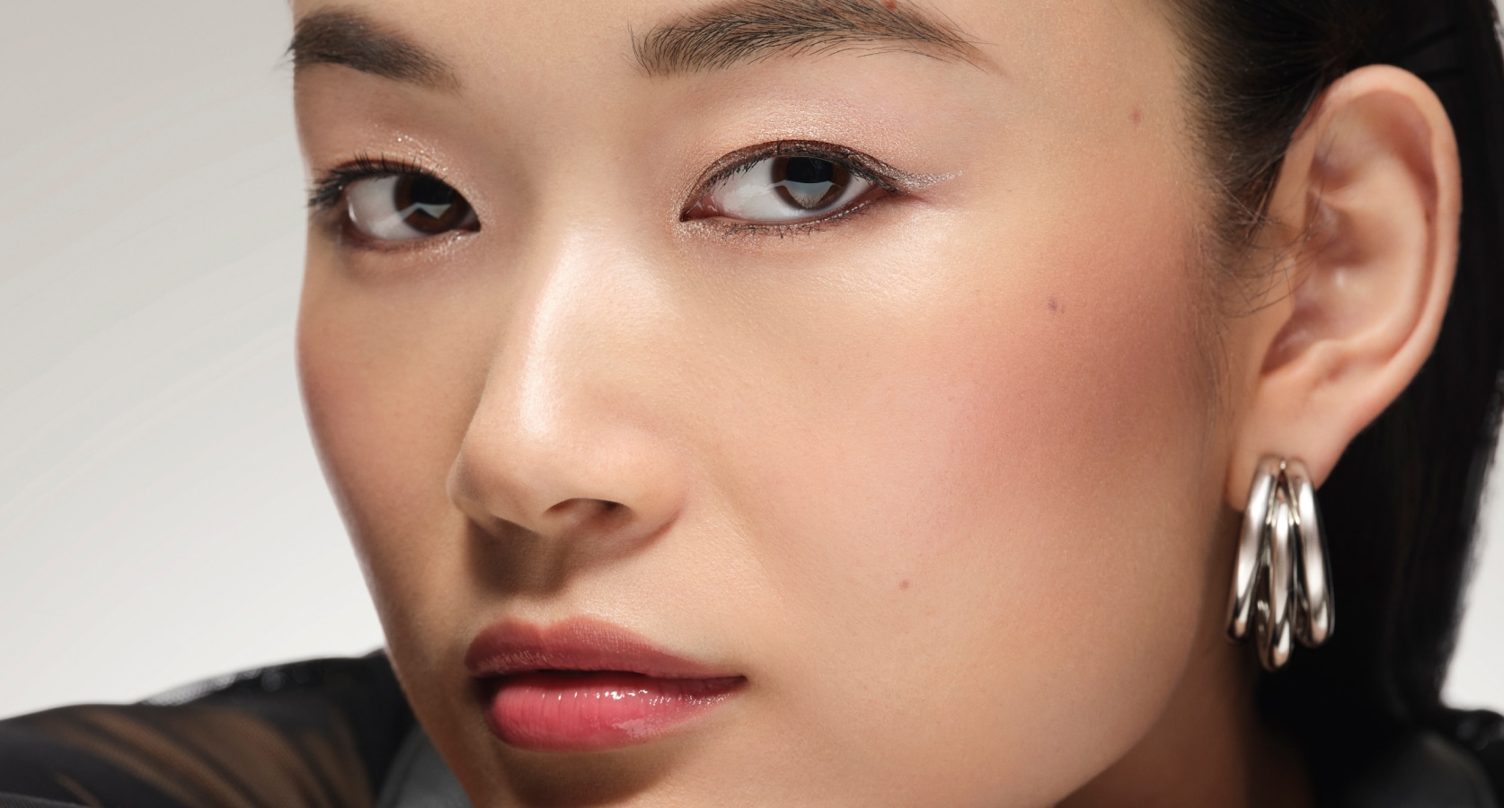 Dab Luxe Eye Shadow in Moonstone on the center of the lid and at the inner corner for a soft, shimmery finish. To create a subtle wing, use a damp brush to line eyes past outer corner.