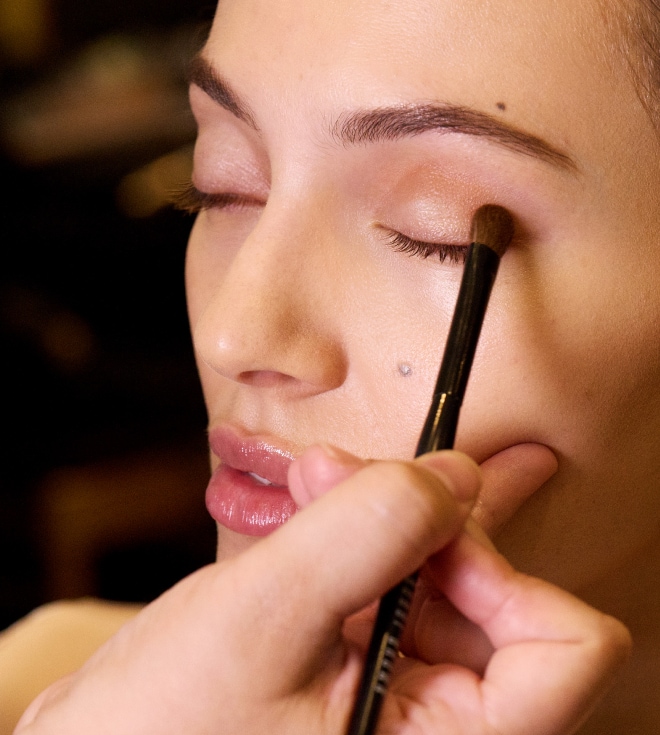 Use a brush to buff Long-Wear Cream Shadow Stick in Cinnamon into the crease of eye and along lower lash line