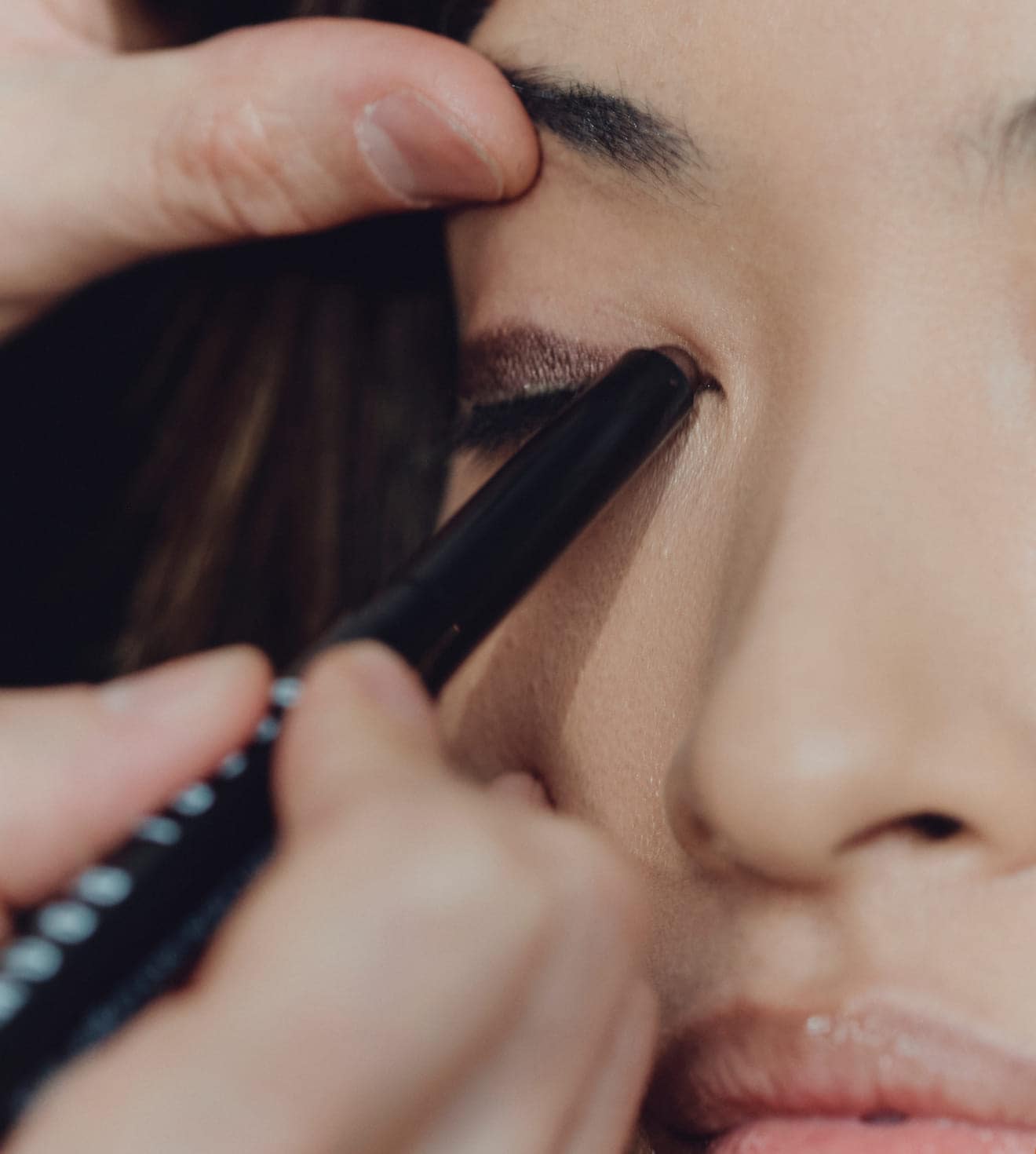 Apply Long-Wear Cream Liner Stick in Panther to upper and lower lash line, smudging upward and outward to elongate eye.