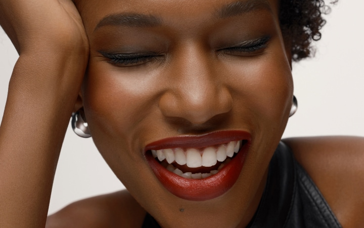 Swipe on Luxe Matte Lipstick in After Hours for a bold, vibrant finish.
